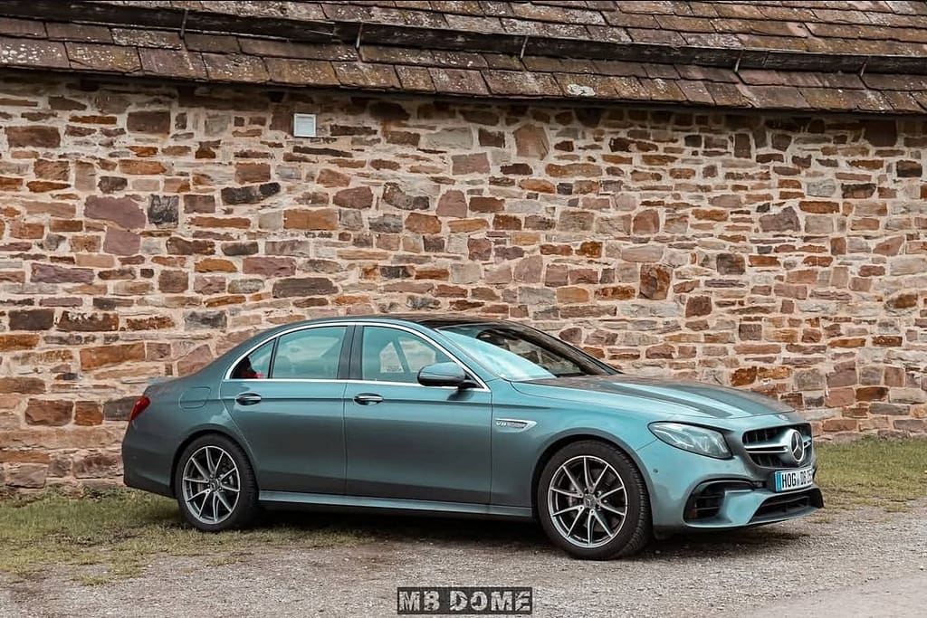 Mercedes-AMG E 63 vor historischer Natursteinfassade